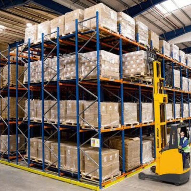 The racks are designed with nearly double the depth of the selective pallet rack to accommodate two pallets in depth which mean pallets of the same SKU must be stored in every location. A special forklift lift with a special telescopic fork or a pantograph fork attachment must be used with this system in order to reach the pallet stored in the behind. Double Deep is a LIFO system which can increase the storage capacity from 10- 15 % based on the layout design.