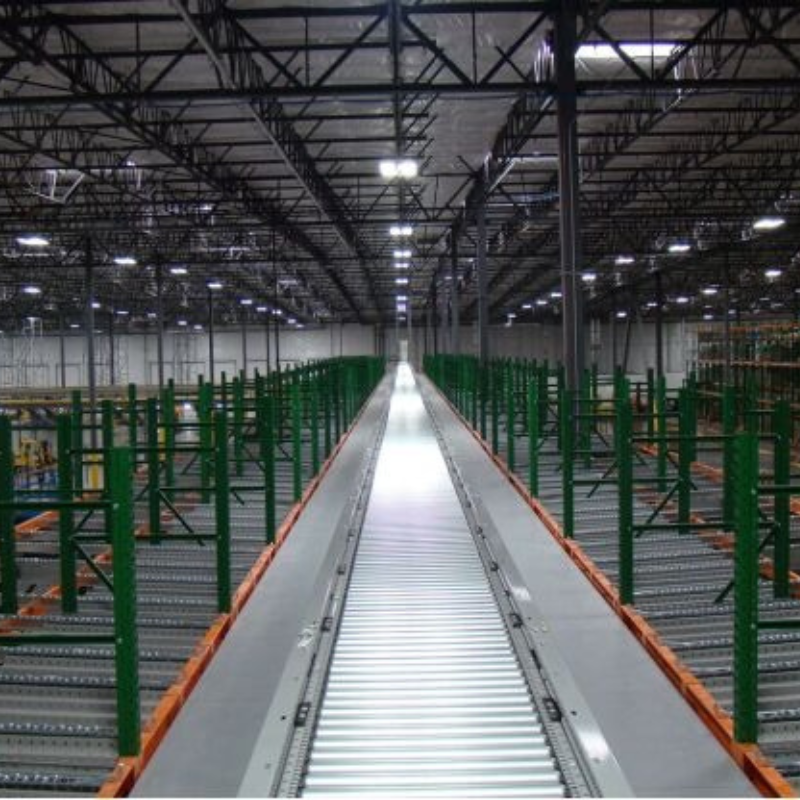 Gravity rack structure is similar to the pallet rack, which uses roller tracks or bottom wheel pallets. The tracks are inclined at 3-5 °, and the goods can automatically slide from the high end of the rack track to the low end using their own weight. Gravity racks are generally within 6 meters and should not be too high. The weight of a single pallet of goods is generally within 1000KG, otherwise its reliability and operability will be reduced. Gravity racks are suitable for storing similar goods in small varieties and large batches, with high space utilization.
