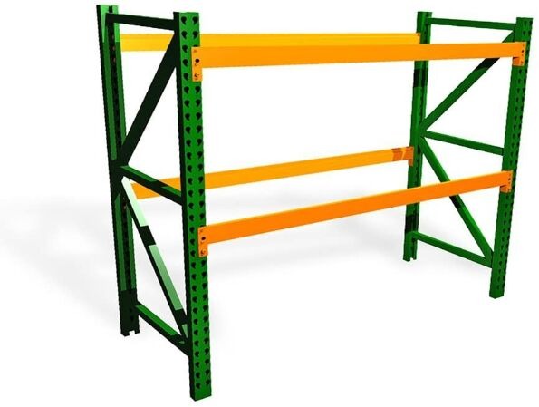 Pallet rack frame feature an angle keyhole-slotted punch pattern every 3". Horizontally and diagonally braced frame creates a strong, stable upright system. Prepunched baseplates for easy anchoring. Rack Manufacturer's Institute (RMI) certified. Hot-rolled structural channel pallet rack frame are specially punched for 2" beam adjustability. Full horizontal and diagonal bracing increases frame strength. 7-ga. Baseplate welded to column disperses floor load and increases stability. Multiple anchor holes allow easy floor mounting. Structural Channel Pallet Rack Components. Multiple offset anchor holes provide flexibility in anchor placement. Footpad with nesting ridge provides easy shim nesting, and flush footpad to column base evenly disperses load weight. Boltless assembly. Closed tubular columns and braces generate greater durability against fork truck damage.